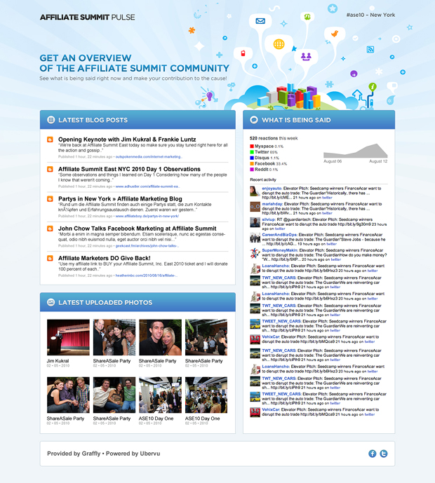 In August 2010 they attended the Affiliate Summit Pulse conference in New York. We helped with building a microsite that reflects the blogging and Twitter pulse of the conference as well as providing selected photos from the event.