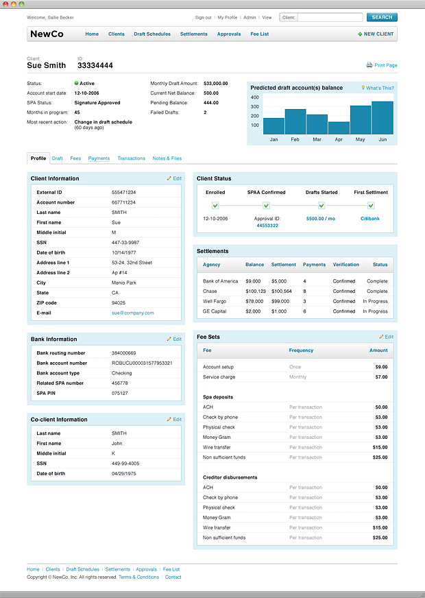 Using white, grey and light blue we were able to design a neutral interface that allows the user to focus more on the workflow and the information inside the page.