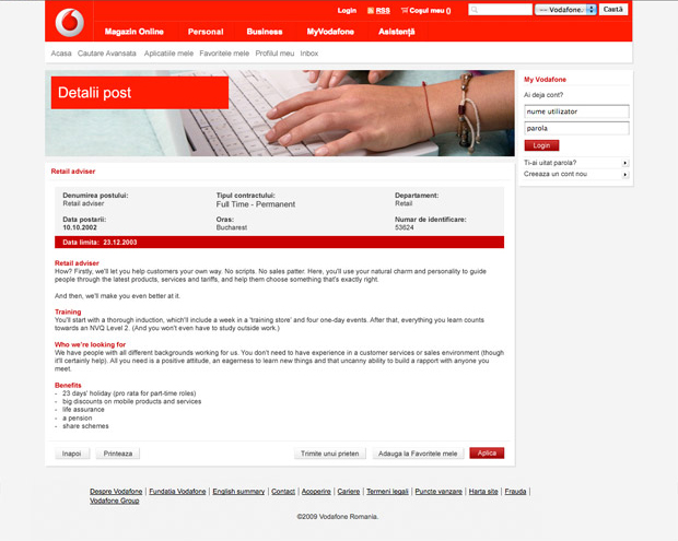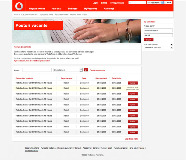 We conceived the usability and design for the human resources management tool used by Vodafone Romania for job advertising and recruitment activities within the company.