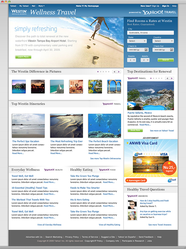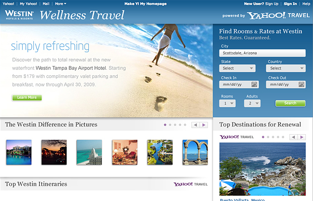 Westin Travel is a custom-designed page for Westin Hotels & Resorts included in the world renowned Yahoo! Travel portal.