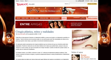 Yahoo Entre Amigas is a microsite developed for Yahoo! Latin America, featured on the Yahoo! Mujer En Espanol entity. The website featured content from three bloggers. All WordPress blogs were available on the site. The homepage aggregates content from all three, featuring articles with i...